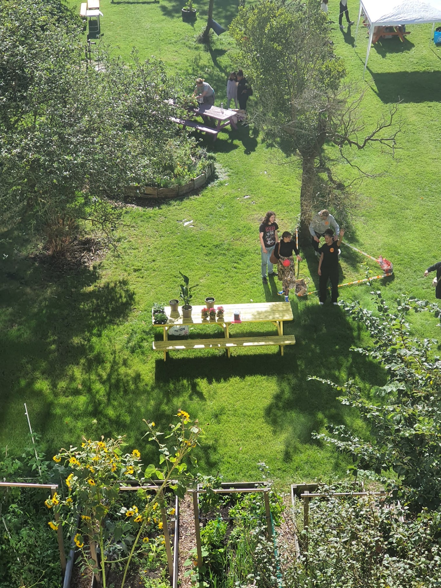 In de tuin verbouwen we samen groenten, kruiden en bloemen. Iedereen – met of zonder groene vingers – is welkom om mee te doen. We hebben kinderbakken, privébakken, bakken voor buurtstichting Vooruit en gedeelde stukken zoals de kruidentuin en een fruitboomgaardje. Zo ontstaat er een dynamische plek waar mensen samen leren, delen en genieten van het buiten zijn.